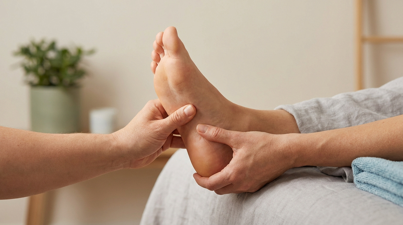 Votre praticien commence par une palpation précise de la tubérosité interne. Il appuie fermement sur cette zone osseuse du talon. L’objectif est de déclencher une douleur vive.